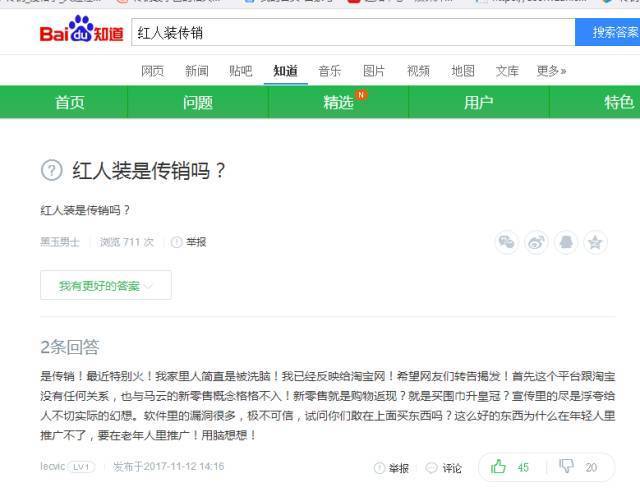 说到这里,很多人会疑问,一个导购网站,如何被定性传销的呢?红人装究竟是怎样传销的呢?我们再来看看它的宣传资料: 一个和【天猫】【淘宝】【京东】品牌商家合作的平台!线上帮助淘宝天猫品牌商家做视频导购,线下帮助淘宝天猫品牌落地实体店! 只要免费关注推荐人二维码,下载红人装APP,终生在【天猫】【淘宝】【京东】三大主流购物平台享受40%产品利润返现,可以直接支付宝提现! 把这个可以超级省钱的导购平台分享给身边的好友,不改变他们以往的购物方式,让他们省钱的同时,商家还可以给到你20%的产品利润返现,可以直接支付宝提现! 下载红人装APP,打开【我的】进入【分享赚钱】,把个人二维码保存到手机相册,一键分享给身边的好友,把这个如此省钱的好消息告诉身边的好友,帮他们超级省钱,你就可以轻松赚钱,每当你的粉丝购物的时候你就可以查看你的佣金返现.可以直接支付宝提现! 温馨提示:每年的淘宝有3万亿的交易额,每年的双1️1️块到了,如何让【天猫】【淘宝】【京东】和你有关系,快速出手快乐分享,让你的小伙伴每一次购物都与你产生关系